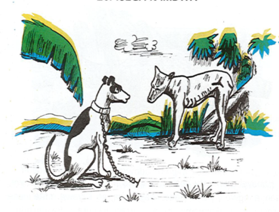 Isega iti «Simbizi. Ese wo umara iki?» Imbwa irayisubiza iti «Iyo bashaka ko ntirukana abantu, banshumika ukwanjye, bakanzanira inyama n'ibindi biryo byiza.» Isega irayisubiza iti «Mugenzi wanjye, nkunda ibiryo cyane, ariko kubirira ku nkomo nsanze ntabishobora. Urabeho.»