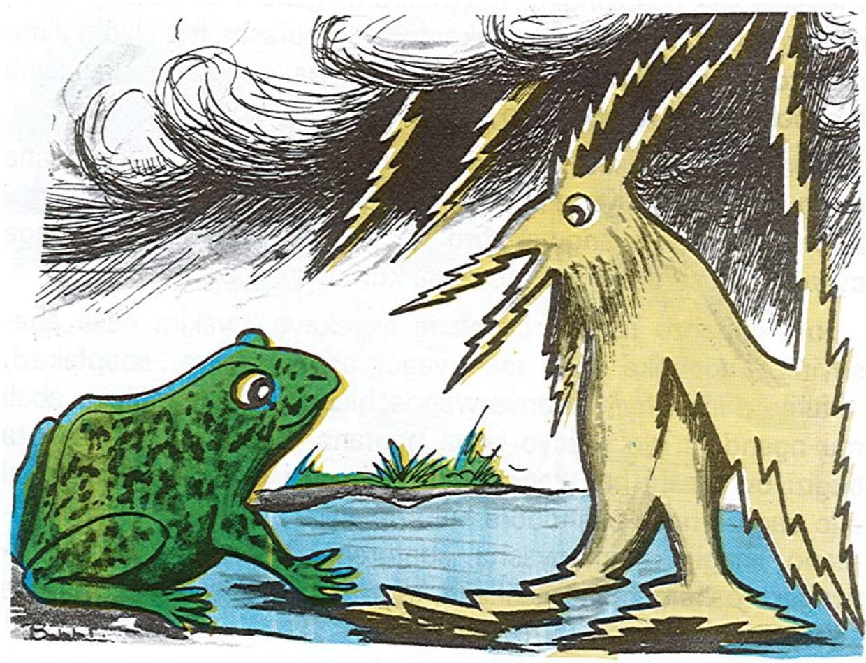 Nkuba abaza Gikeri ati “Ese Gikeri, ko wubatse utya, wowe usakaza iki, ubwatsi ubukura he? Ubutemesha iki ?” Gikeri ati “Mfite umuhoro wanjye ngomba gusakara inzu yanjye simvirwe.” Nkuba ati “Nanjye rero ndi umukene, untize uwo muhoro wawe nitemere ubwatsi njyane ku ijuru, njye kwisakarira inzu. Umugore n’abana ntibagira aho bicara.”